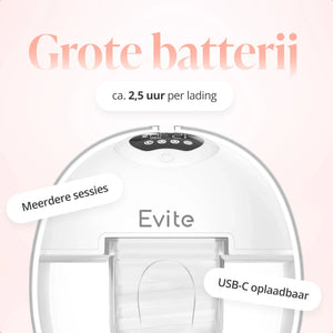 The Evite breast pump is quiet, stylish, and completely hands-free. It naturally supports your milk production and is comfortable to wear, even on the go. Easy to clean and discreet to use, without compromising on convenience or freedom.