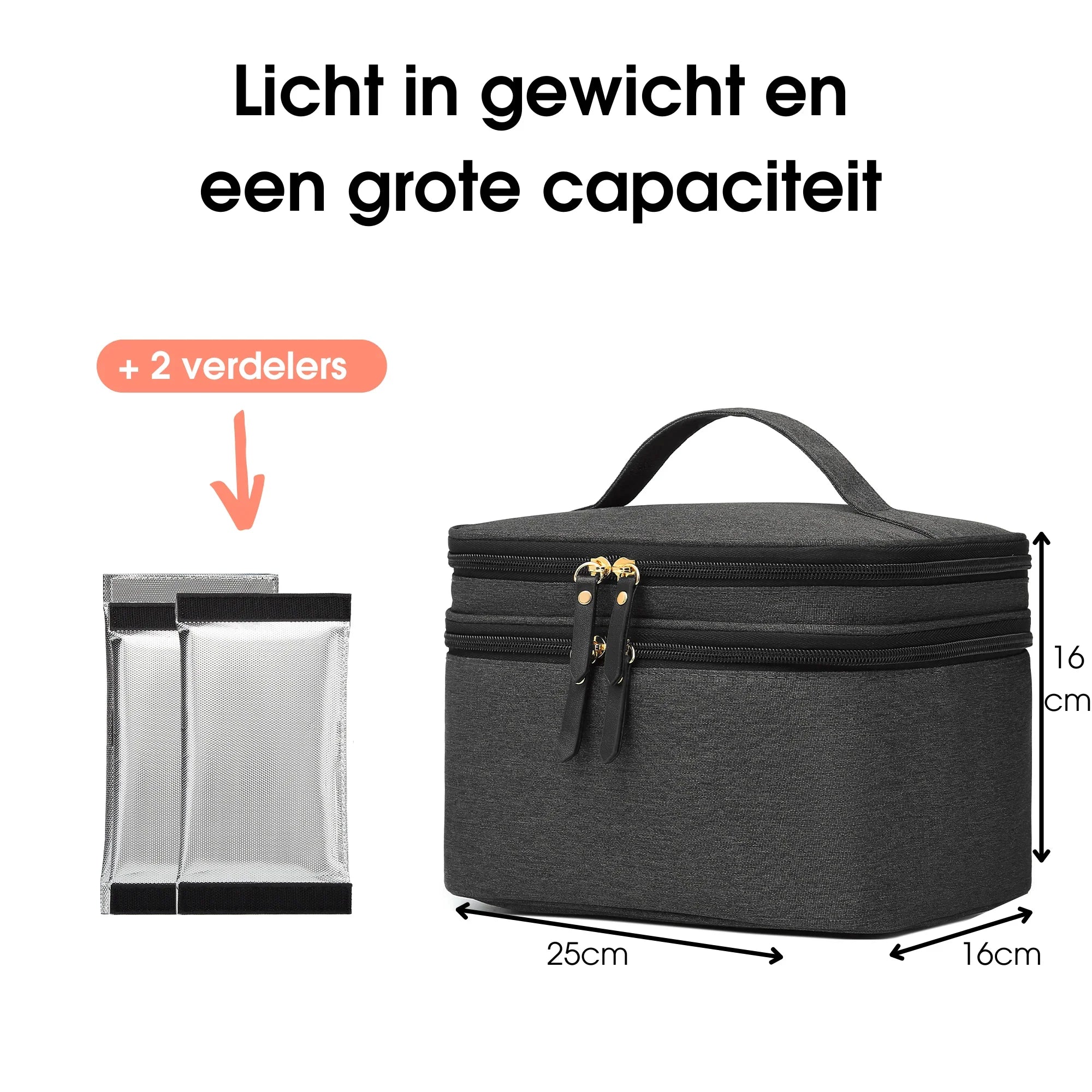 Absoluut. Naast melk kun je ook voeding, snacks of gekoelde babyverzorgingsproducten meenemen. De tas is veelzijdig en past zich aan jouw behoeften aan.