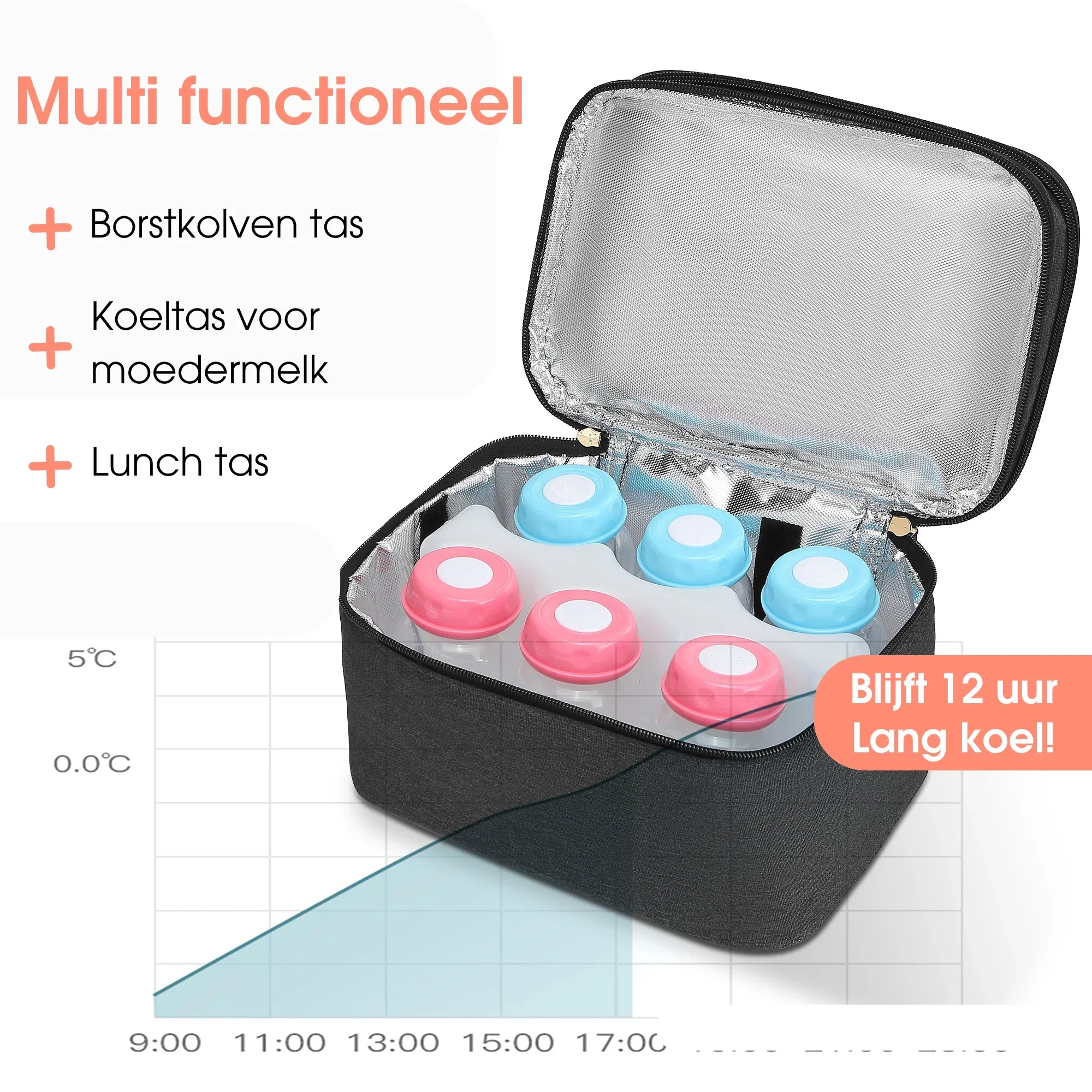 Of je nu onderweg bent, aan het werk of even geniet van een moment voor jezelf, deze koeltas zorgt dat jouw melk altijd op temperatuur blijft. Zonder gedoe, zonder zorgen.