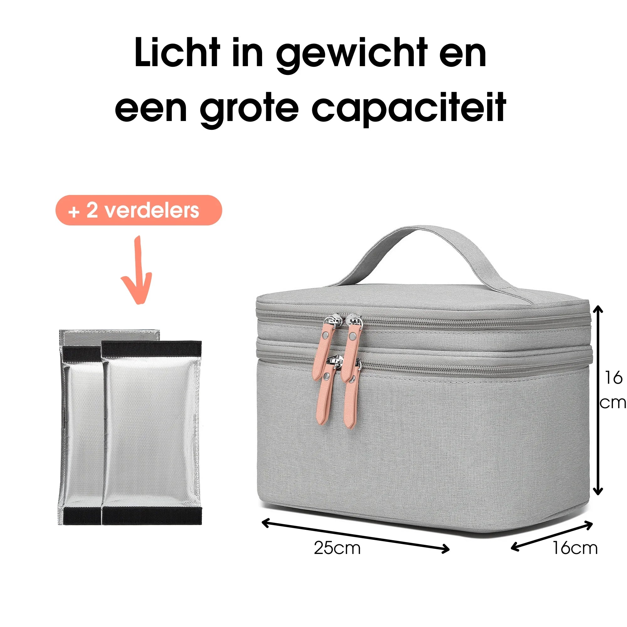 Absoluut. Naast melk kun je ook voeding, snacks of gekoelde babyverzorgingsproducten meenemen. De tas is veelzijdig en past zich aan jouw behoeften aan.