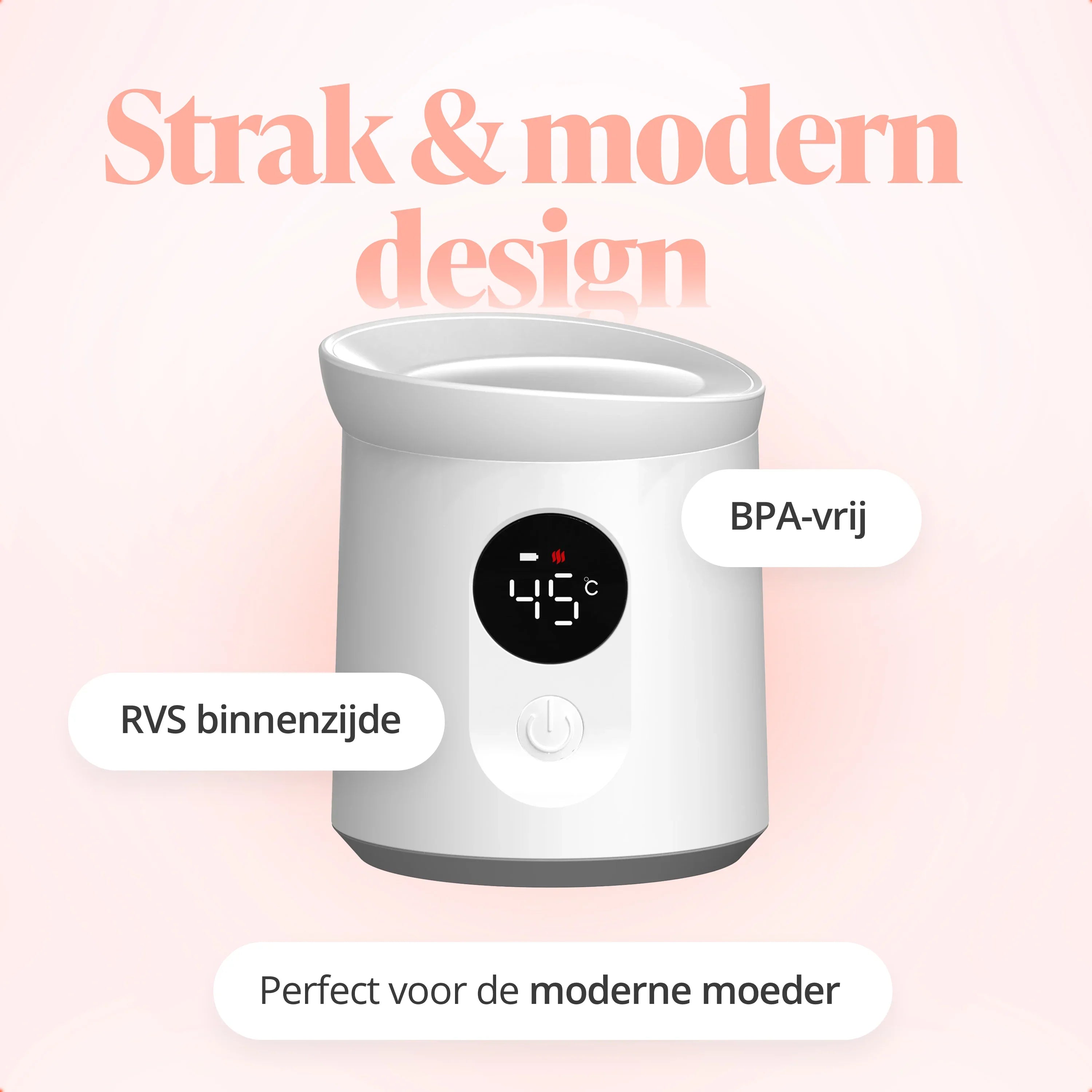 Het stijlvolle, compacte design met een krachtige 11.500 mAh batterij warmt tot wel 14 flesjes op.