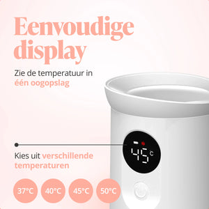 Naciśnij przycisk włączania, aby rozpocząć podgrzewanie. Standardowa temperatura to 37°C, idealna dla mleka lub mieszanki. Możesz także wybrać 40°C, 45°C lub 50°C.
