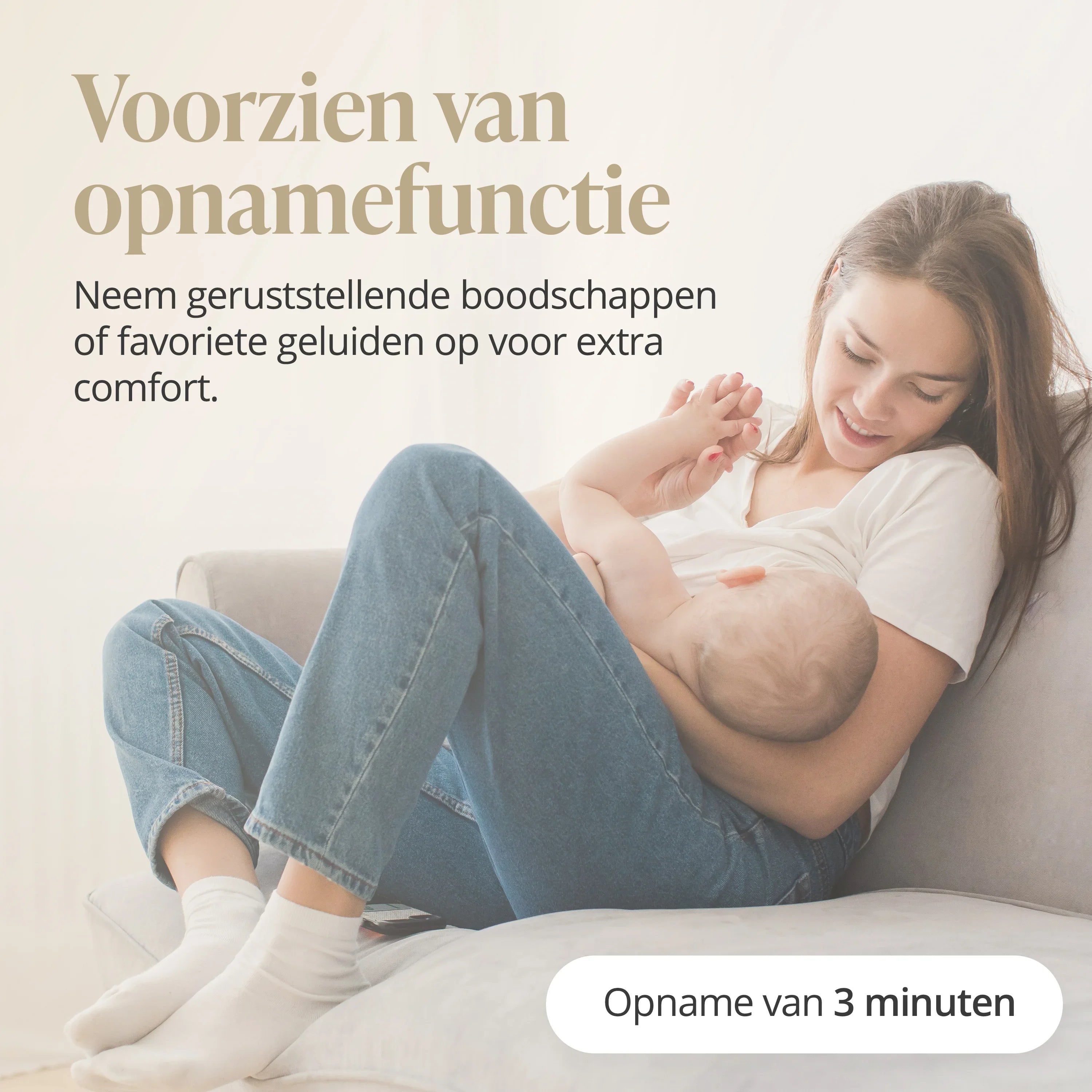 "Onze baby slaapt nu veel rustiger sinds we deze white noise machine hebben. Er zijn volop geluiden om uit te kiezen en hij werkt superlang op één lading. Precies wat we nodig hadden." - Marjanne K