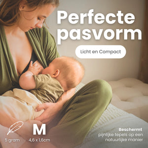 "Na een paar dagen merkte ik al verschil. De kapjes voelen direct verkoelend aan en beschermen m’n tepels tussen het voeden door. Geen zalfjes of pleisters meer nodig. Ze blijven goed zitten en je voelt ze amper." - Marjanne K