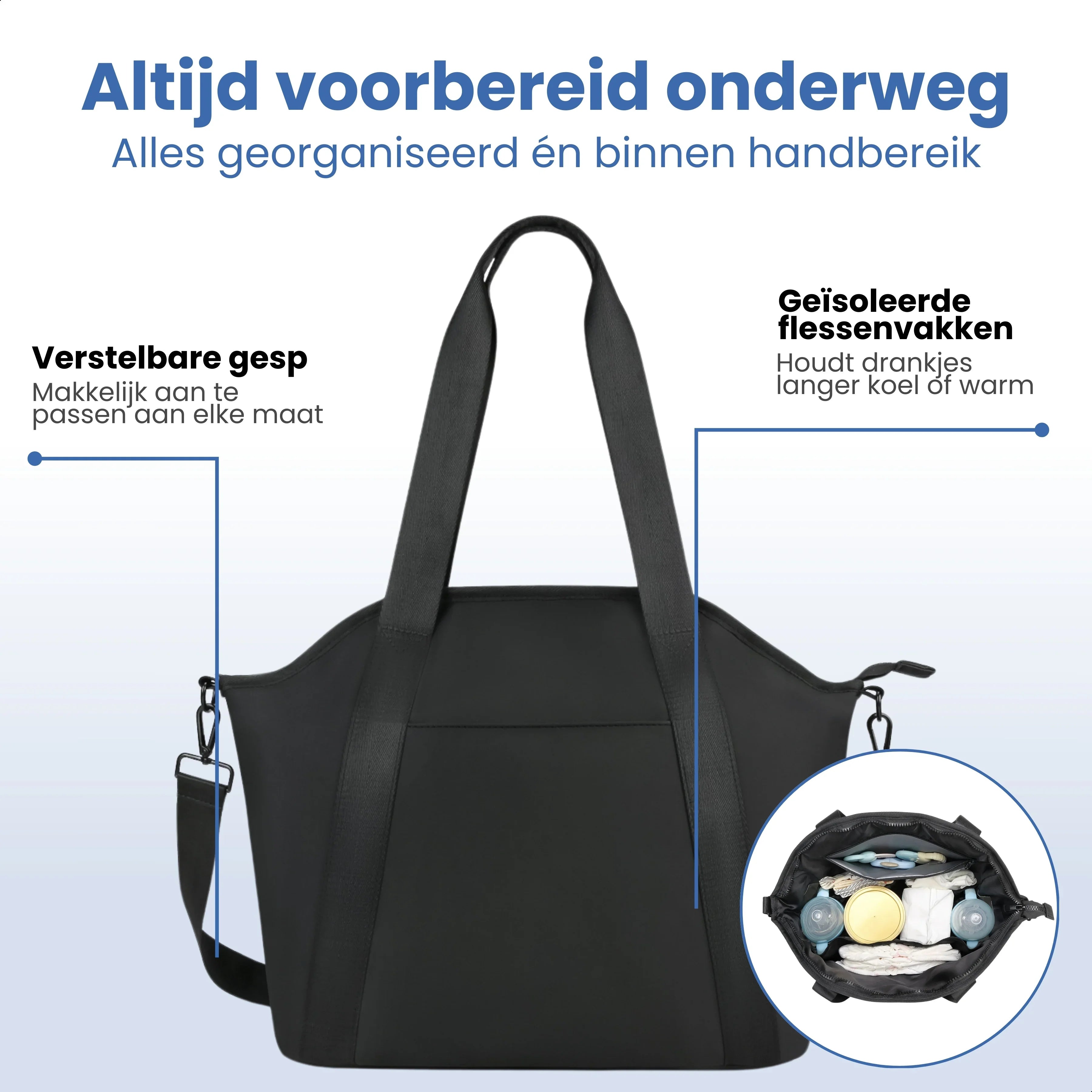 Of je nu naar de opvang, het park of een dagje weg gaat. Deze tas houdt alles overzichtelijk, droog en binnen handbereik. Zonder concessies in stijl of gemak.