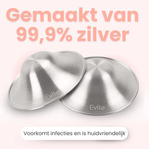 De Evite Silver Nursing Cups zijn gemaakt van 999-zilver en zorgen voor directe verzachting bij pijnlijke, gevoelige of gebarsten tepels. Ze bevorderen het herstel op een natuurlijke manier, zonder crèmes of zalf. Comfortabel om te dragen, makkelijk schoon te maken en stijlvol verpakt. Een must-have voor elke kolvende of borstvoedende moeder.